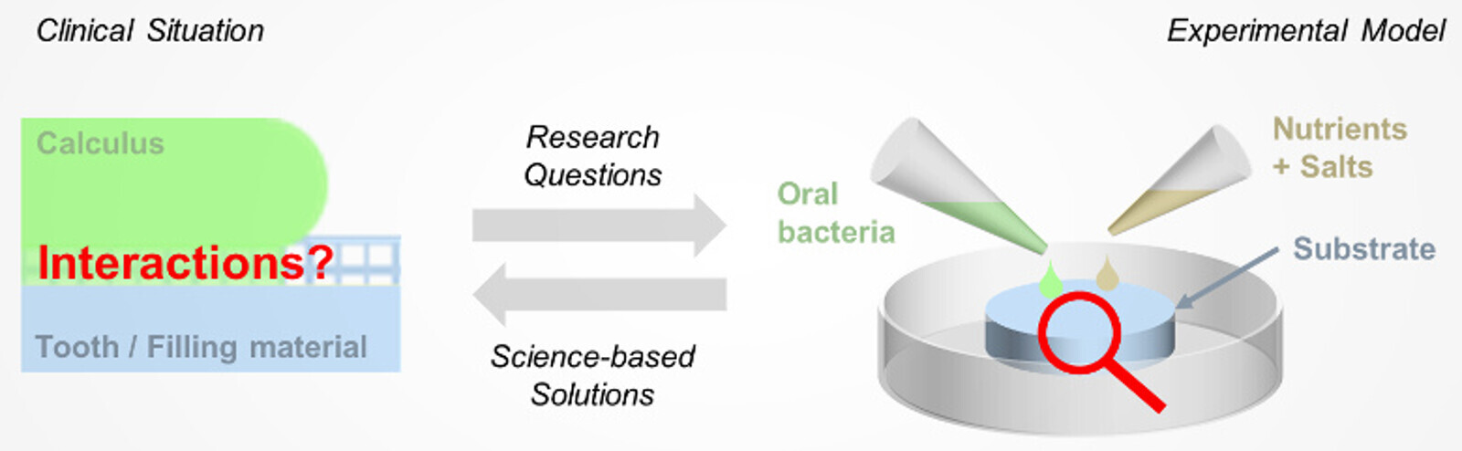 W komunikacie prasowym Max Planck Institute of Colloids and Interfaces (MPICI), materiałoznawca dr Cécile Bidan, kierownik grupy w Wydziale Biomateriałów Instytutu, wyjaśnił uzasadnienie badań: „Razem ze współpracownikami dentystów z Charité, zbada, w jaki sposób zmineralizowane biofilmy oddziałują ze sztucznymi materiałami wypełniającymi. Ostatecznie ta podstawowa wiedza pomoże w projektowaniu takich materiałów, aby zapobiegać odkładaniu się kamienia nazębnego lub kamienia nazębnego”. W związku z tym zespół badawczy zbada tworzenie, wzrost i mineralizację biofilmów.