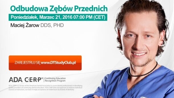 Dental Tribune Study Club zaprasza do udziału w webinarium, które odbędzie się w poniedziałek 21 marca o godz. 19.00. Wykład pt.: "Odbudowa zębów przednich - licówki wykonywane laboratoryjnie czy bezpośrednie licówki kompozytowe?" poprowadzi dr n. med. Maciej Żarow.