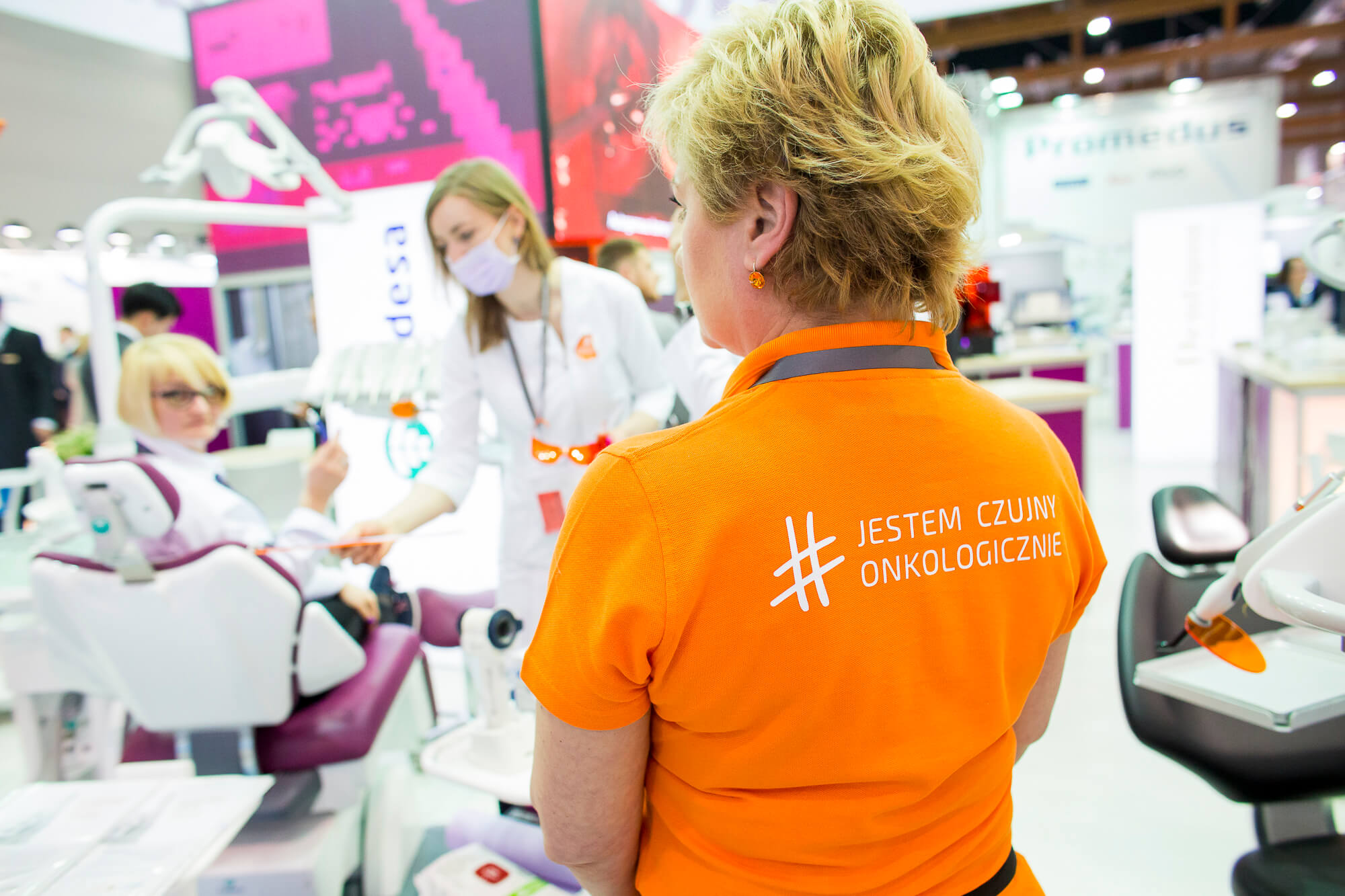 „Każdy z nas jest człowiekiem, a pomagając drugiemu człowiekowi pomagamy de facto sobie, bo nigdy nie wiemy, czy sami nie będziemy kiedyś potrzebować pomocy” – powiedział lekarz dentysta Konrad Rylski, wygłaszając wykład inauguracyjny pt.: „Dentysta w Afryce”. Z całą pewnością, podczas 3 dni targów można było spotkać wielu lekarzy, którzy do swojego zawodu podchodzą holistycznie i dla których ich zawód to misja, m.in. dlatego tak dużym zainteresowaniem cieszyła się akcja społeczna #JestemCzujnyOnkologicznie, mająca na celu popularyzację roli lekarzy dentystów w rozpoznawaniu potencjalnie nowotworowych zmian w jamie ustnej pacjenta. Na wybranych stoiskach odbyły się badania przesiewowe pod kątem wykrywania nowotworów jamy ustnej. Podczas nich lekarze uczyli się, jak powinno wyglądać takie badanie, które można przeprowadzić w czasie standardowego przeglądu. Do akcji włączyło się wielu cenionych w branży stomatologów, którzy zarówno badali, jak i brali udział w akcji w charakterze pacjentów. „Problemy onkologiczne naszych pacjentów są niezwykle istotne. Dane dotyczące problemów onkologicznych, które przedstawia Światowa Organizacja Zdrowia są szokujące. Każdy z nas ma kogoś wśród znajomych czy w rodzinie, kto jest chory onkologicznie, dlatego ta akcja jest niezwykle istotna. My jako lekarze dentyści, lekarze pierwszego kontaktu, musimy być niezwykle czujni na wszelkie patologie, które w jamie ustnej spotkamy, koncentrować się nie tylko na zębach, nie tylko na czasem błahym problemie, z którym przychodzi pacjent, ale przede wszystkim bardzo dokładnie badać całą jamę ustną” – apelowała podczas Targów prof. Jolanta Pytko-Polończyk.
